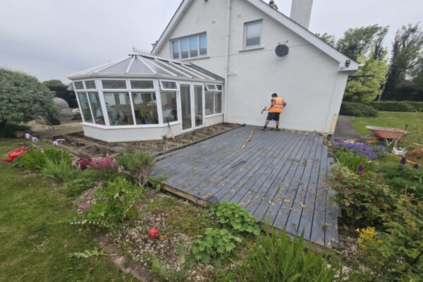 In Clane, Co. Kildare, we replaced an old, weather-worn timber deck with a clean and modern Barleystone paving slab patio. The new surface offers a durable, maintenance-free solution that enhances the outdoor space with a fresh, long-lasting finish.