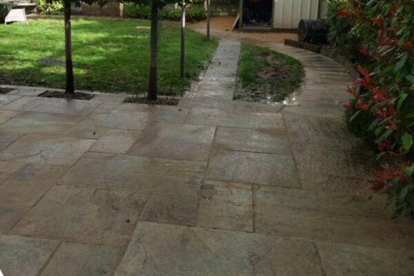 Indian Sandstone Slabbed Patio with Step and Gravelled Flowerbeds in Limerick City