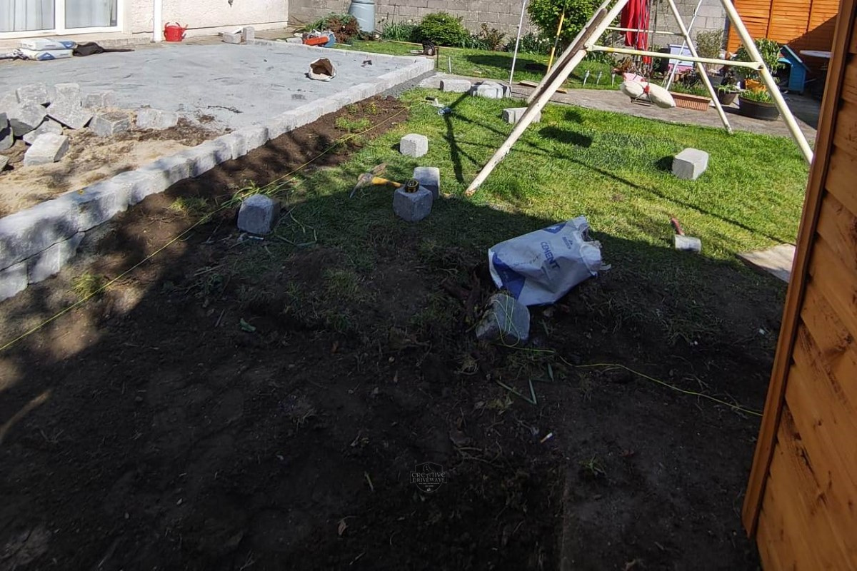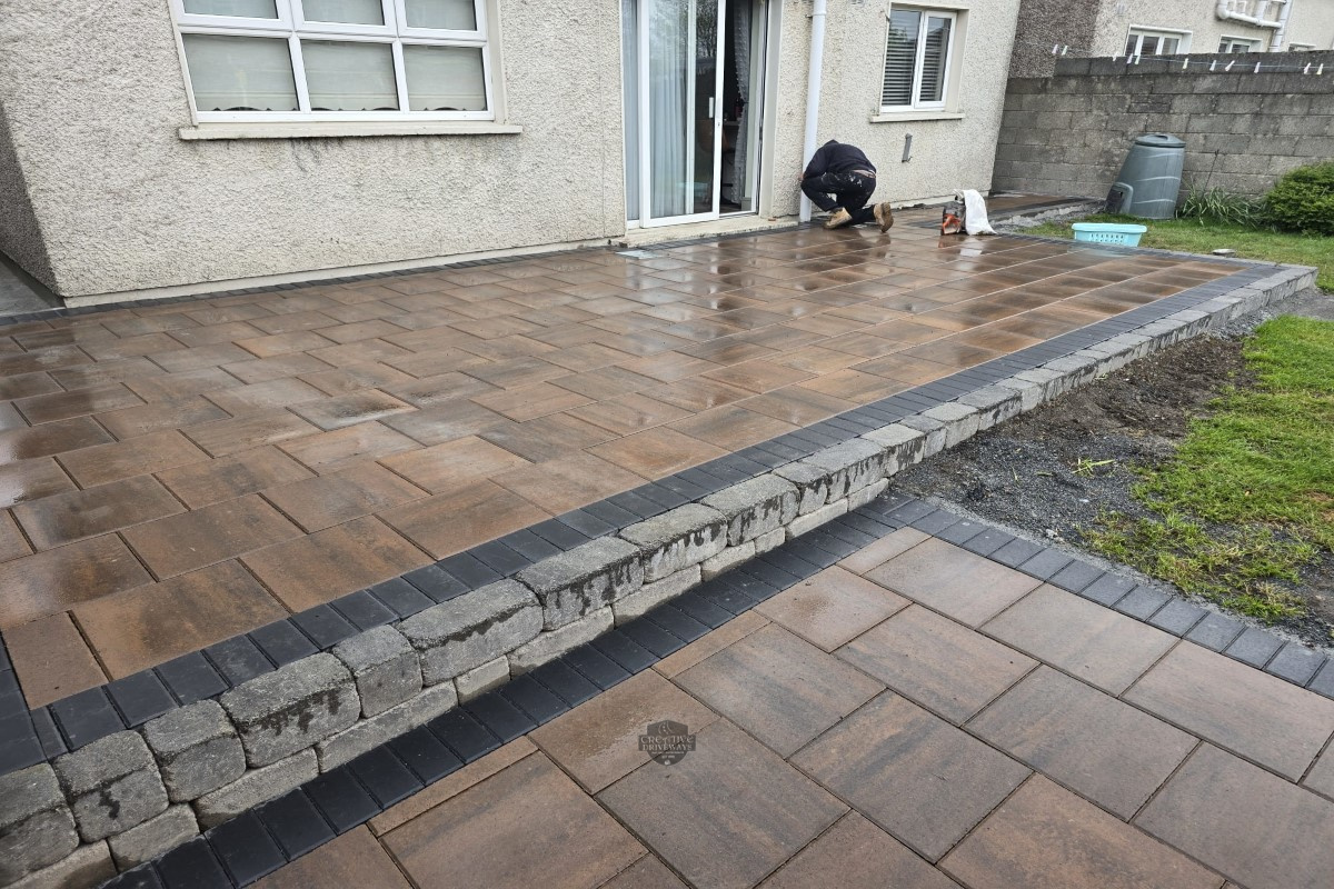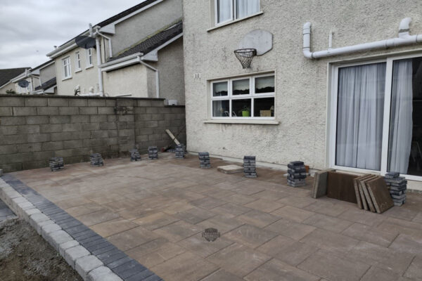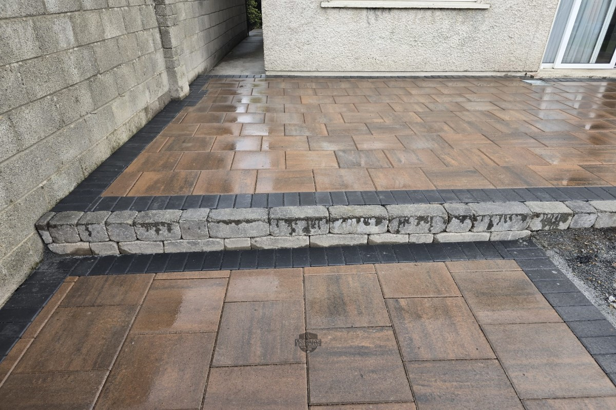 Raised Patio with Barleystone Paving and Heritage Walling in Celbridge, Co. Kildare