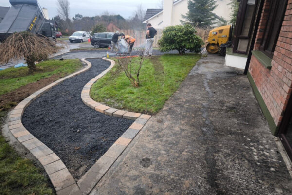 Here, we completed a driveway in Newbridge, Co. Kildare, finished with durable Stone Mastic Asphalt (SMA) for a smooth and resilient surface. The footpath features a high-quality Vuba resin-bound finish, complemented by elegant cobblestone borders for a stylish and long-lasting design.
