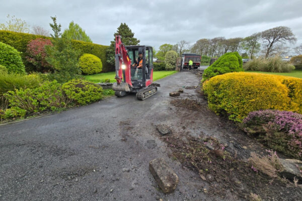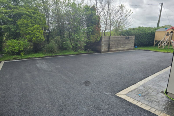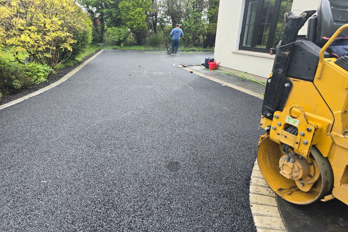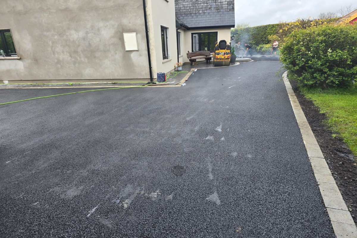 We recently completed a high-strength SMA tarmac driveway in Maynooth, Co. Kildare, framed with elegant silver granite paving. The combination offers durability with a refined, upscale finish—perfect for both function and visual appeal.