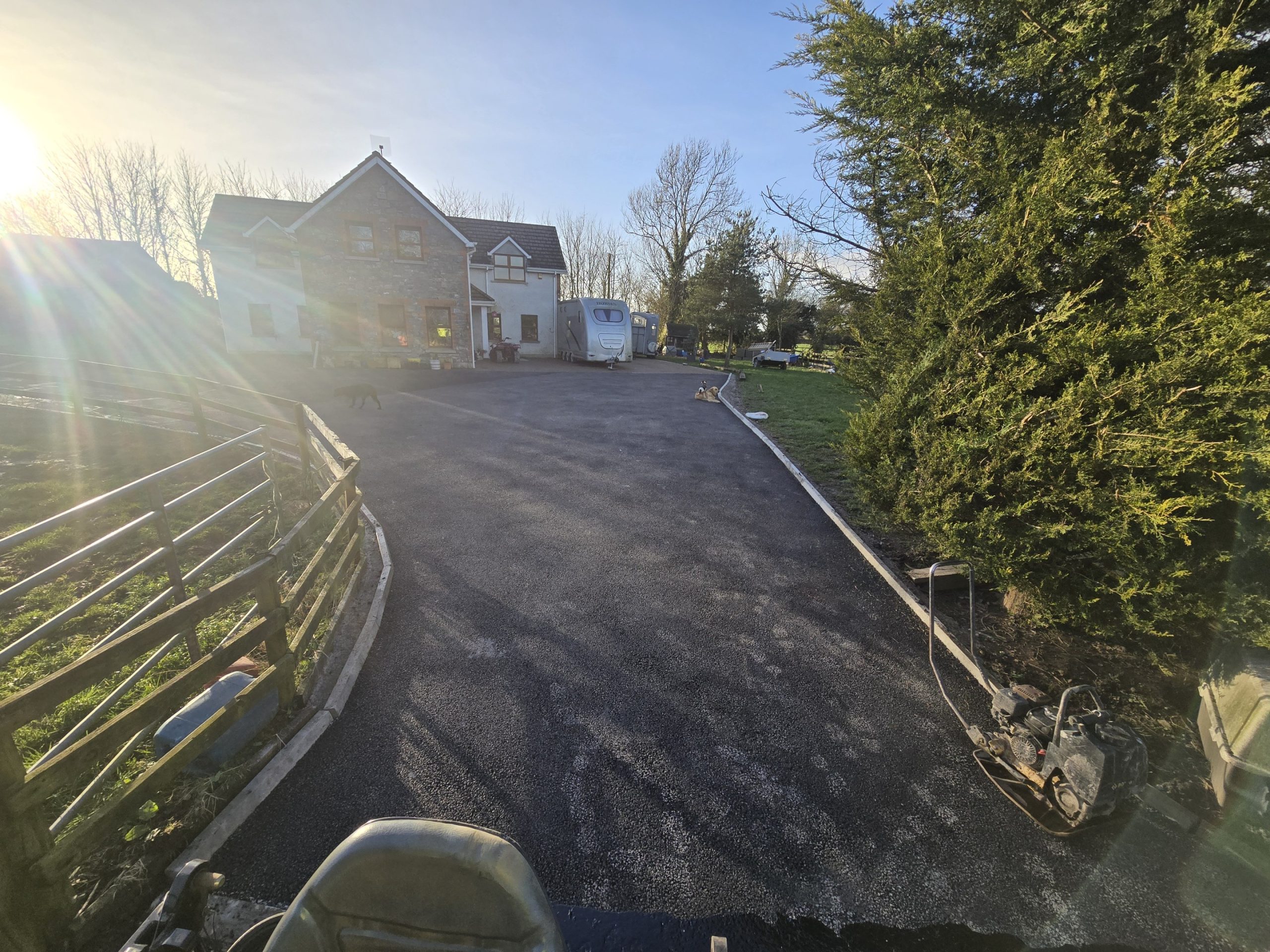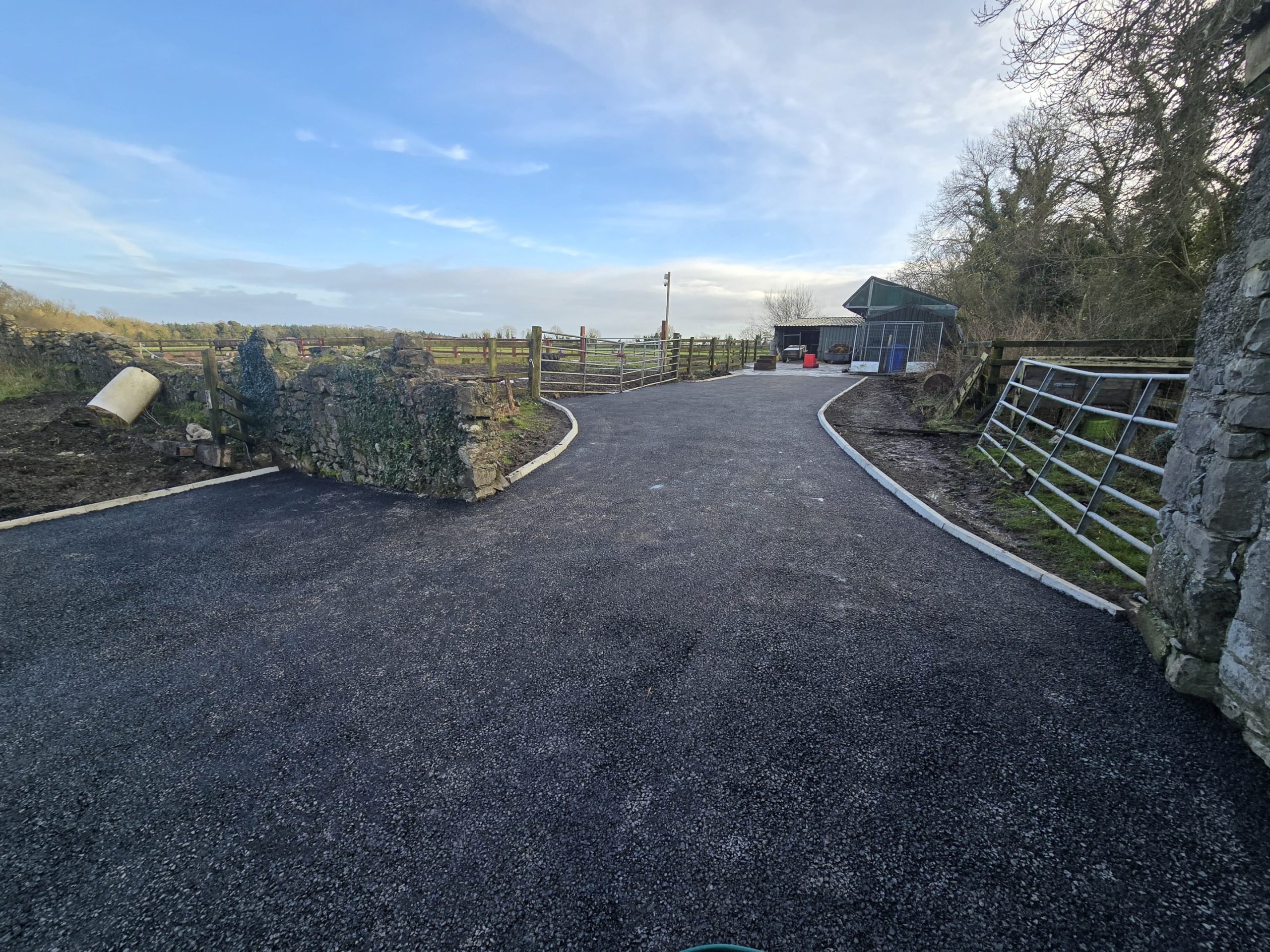 We completed an SMA stone mastic asphalt driveway in Portarlington, Co. Laois. We supplied and fitted new kerbing around the perimeter and laid SMA tarmac across the massive driveway and roadway for the horse yard.