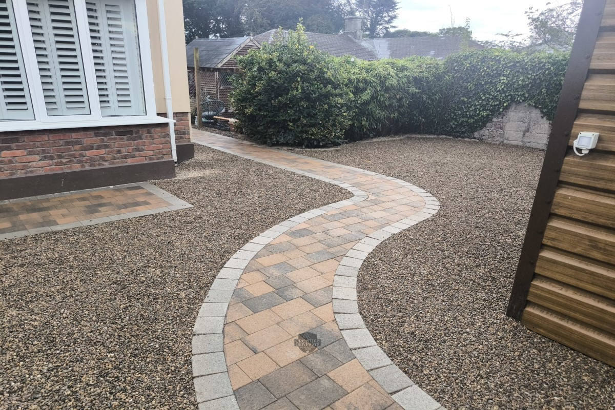 Tar and Chip Driveway with Barleystone Paved Footpath, Border and Apron in Castleconnell, Co. Limerick