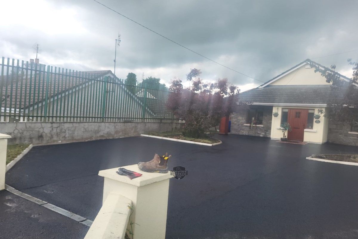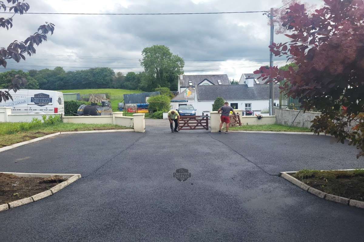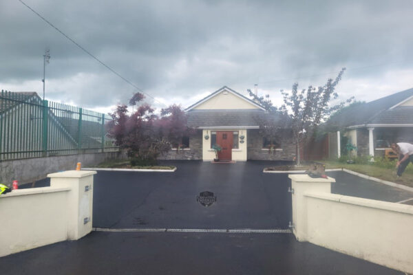Creative Driveways installed two tarmac driveway extensions at a property in Abbeyleix, Co. Laois. We dug out the lawn, installed a new hardcore 804 base, some kerbing and applied fresh tarmac. Finally, we cleaned and re-sealed the original driveway with a hot bitumen sealer.