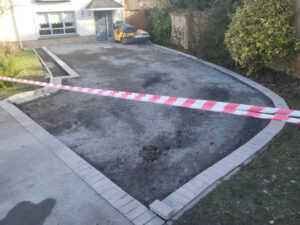 Creative Driveways have completed a new driveway in Naas, Co. Kildare, featuring a tarmac top finish with a natural grey paved border around the perimeter.